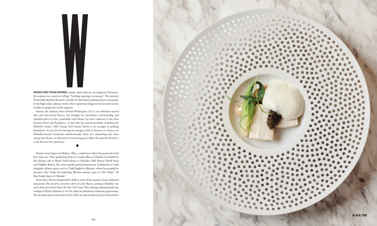 From there, Ratino sharpened his skills at some of the country’s most celebrated restaurants. He served as executive chef at Caviar Russe, earning a Michelin star and a three-star review from The New York Times. His training continued under the tutelage of Wylie Dufresne at wd~50, where he delved into molecular gastronomy. He also spent time at Dovetail in New York City and minibar by José Andrés before returning to Washington, D.C., in 2016 to helm the kitchen at Ripple. His work there earned him the Rammy Culinary Rising Star of the Year Award in 2017.