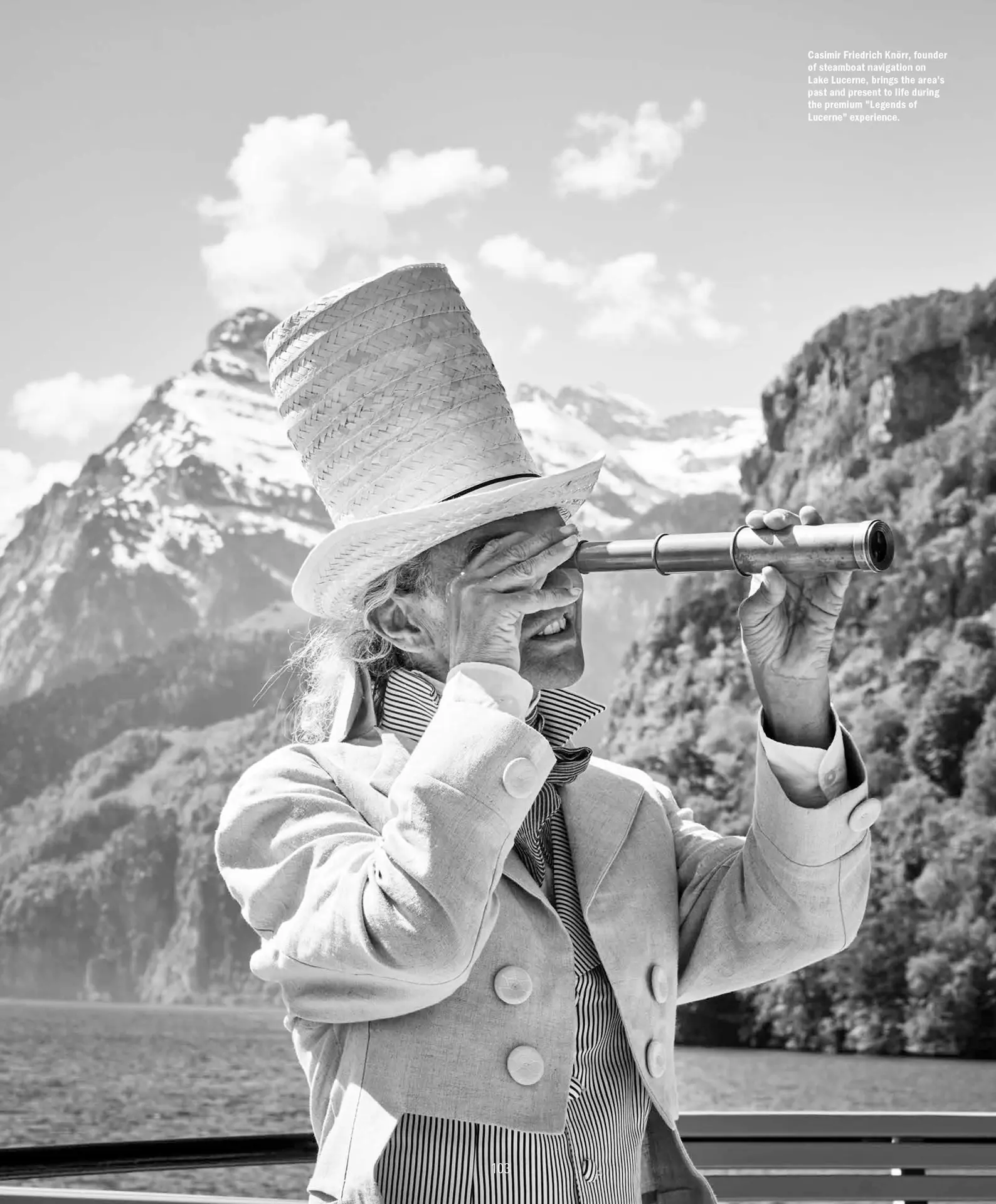 a flurry of regal servers emerges, offering refreshing towelettes and trays of bubbly, and when the steamship sounds its high-pitched whistle, the adventure begins. With a maximum of 65 guests, it feels as though you have the large boat—and the fairytale surroundings—all to yourself. The experience unfolds much like a play, with scenery that constantly changes from Lucerne’s medieval architecture, flower boxes and storybook swans to glimpses of daily life with rowing squads and sailboats bobbing in the wind.